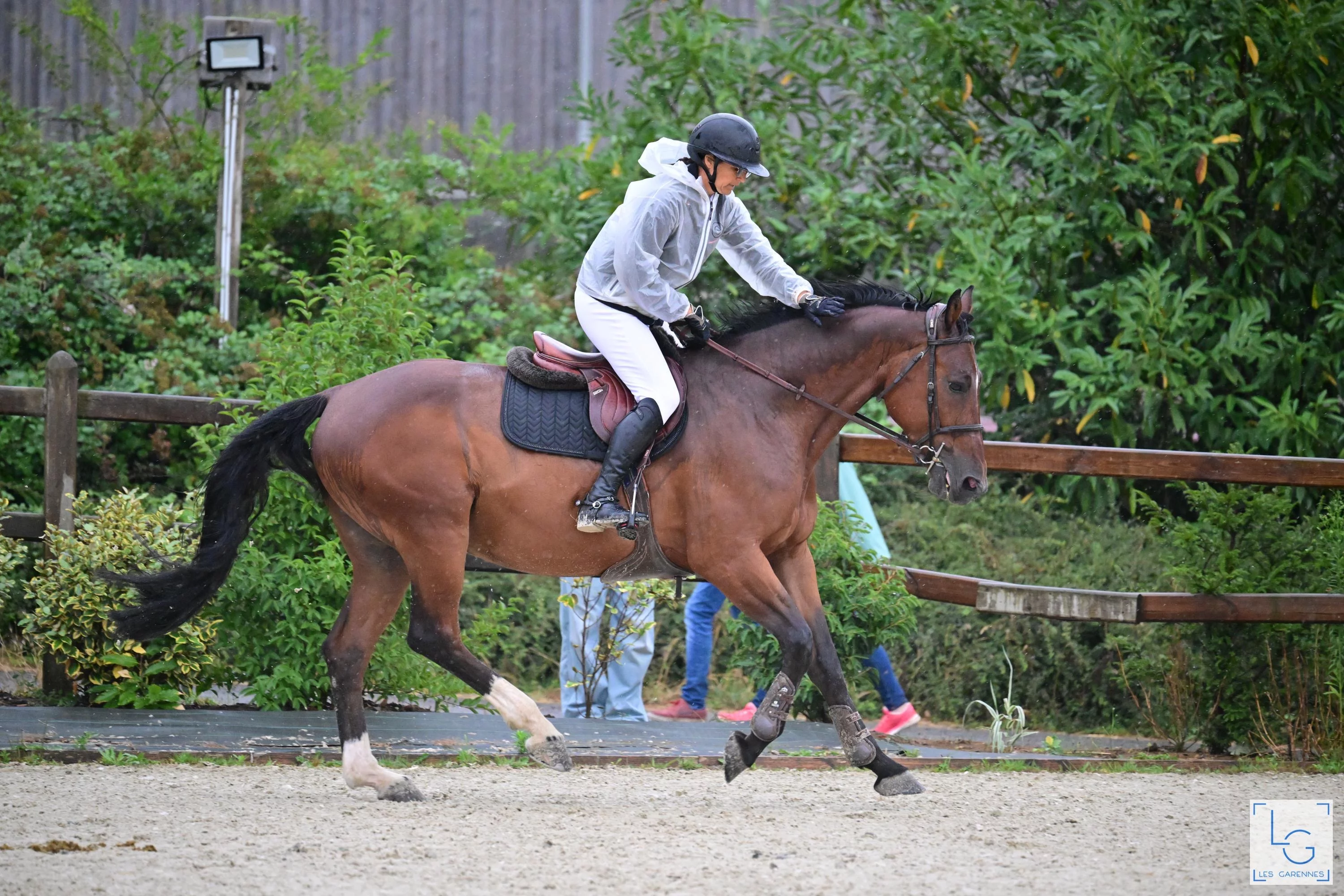 Chaque cheval est mis au paddock tous les jours entre 8h00 et 13h00. Paddocks équipés d'abreuvoirs automatiques et ombragés.